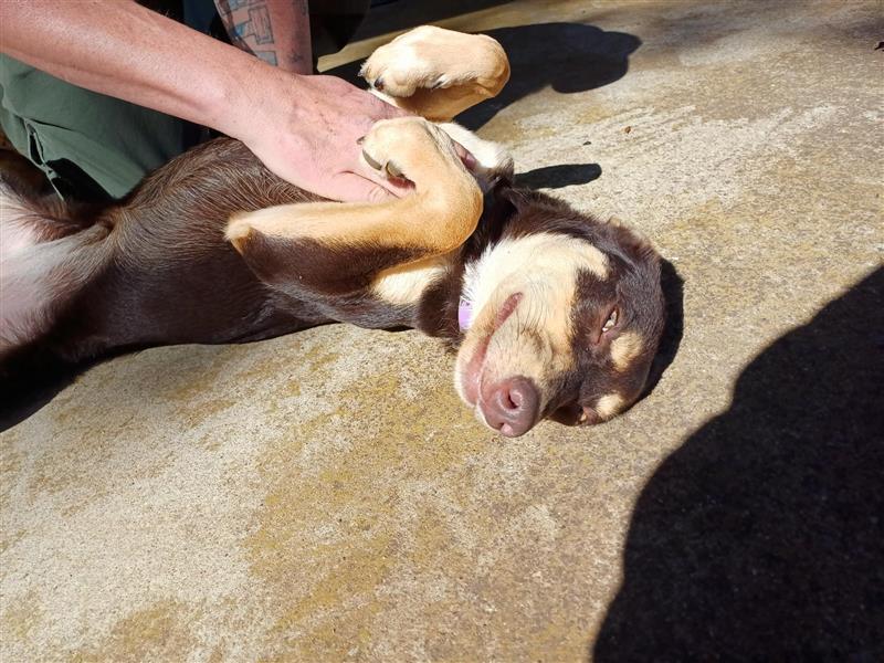 Meet Lucy, a 7-month-old Kelpie with a gentle heart and a shy little wiggle. She may be a bit timid at first, but give her a moment and you’ll see her sweet personality shine through. Lucy loves quiet affection, soft voices, and people who move at her pace. With patience, she’ll blossom into the loyal, loving companion Kelpies are known to be. Contact us to learn more.